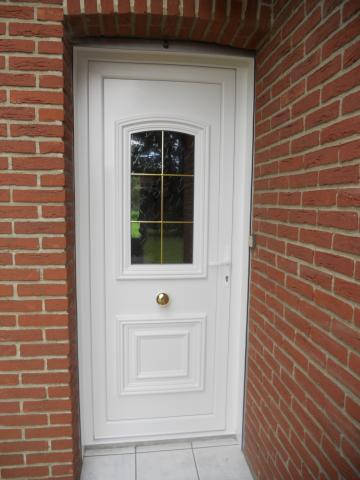 • Fourniture et pose d'une porte d'entrée cintré en PVC chêne doré